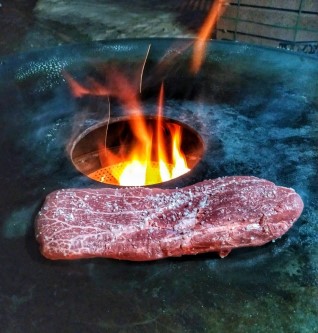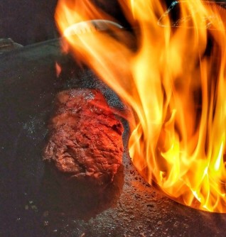 Wenn das Flat Iron Steak dann soweit ist, werdet ihr mit einem intensiven Rindfleisch-Geschmack belohnt. Leicht mürbes Fleisch mit einem etwas festeren Biss, aber ungeheuer saftig. Ich würde es geschmacklich am ehesten mit Roastbeef vergleichen. Das Flat Iron Steak auf den Bildern wurde vorab lediglich mit Murray River Salz eingerieben; der Eigengeschmack war grandios.